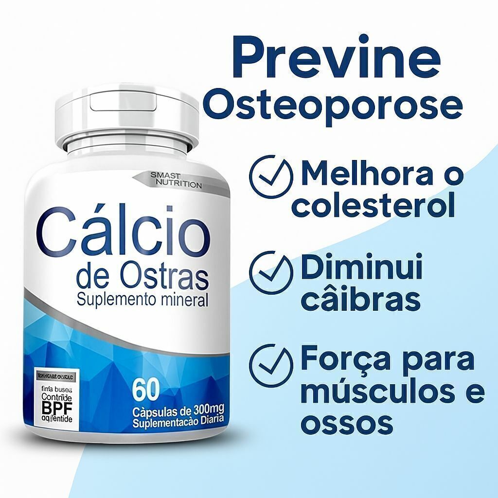 O Cálcio de Ostras é um suplemento mineral natural, indicado para auxiliar na manutenção da saúde óssea e na reposição de cálcio no organismo. Sua fórmula é obtida a partir da concha de ostras, rica em cálcio biodisponível, ideal para suplementação diária.