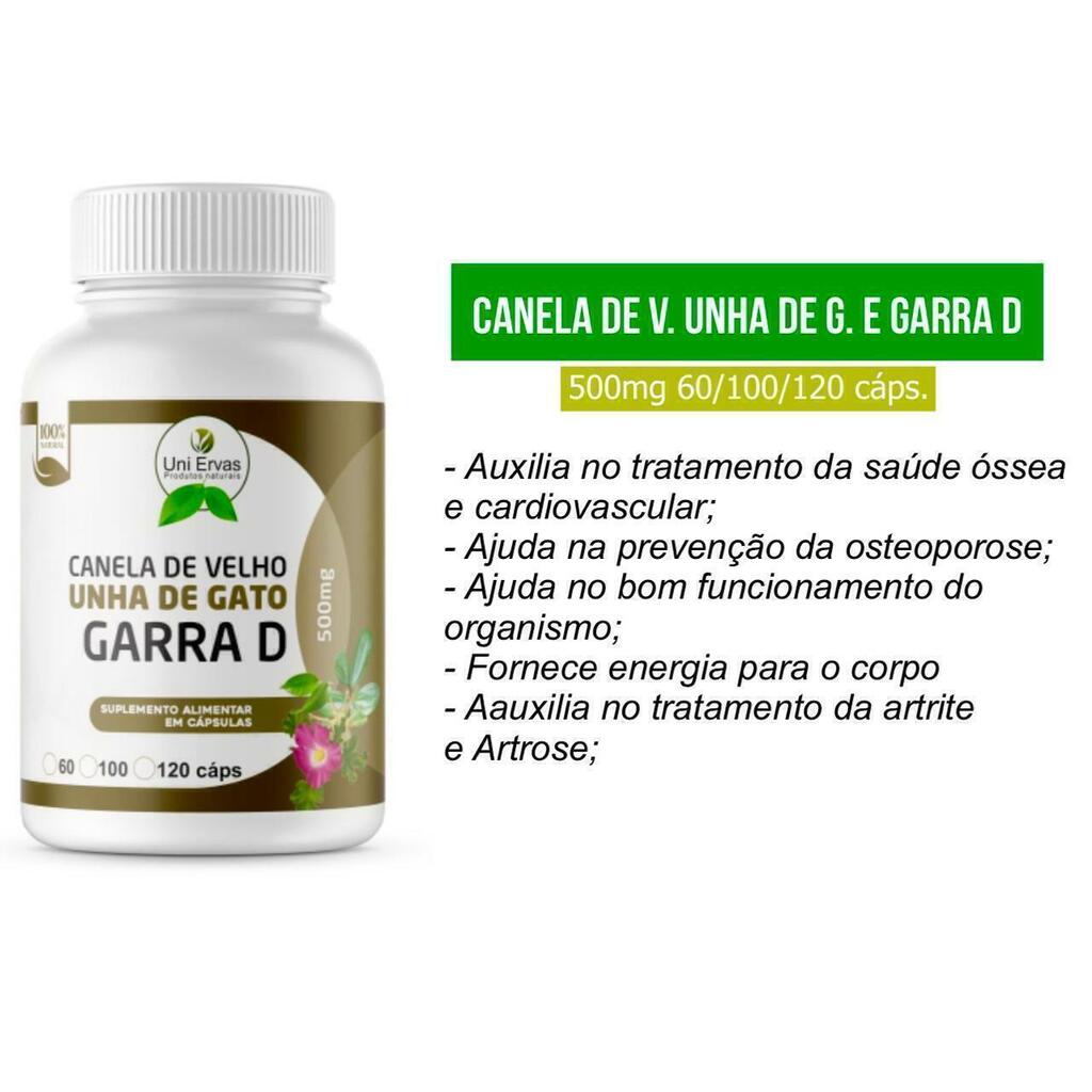 Canela de Velho com Sucupira + Garra D + Unha de Gato - 500mg - 60 cápsulas