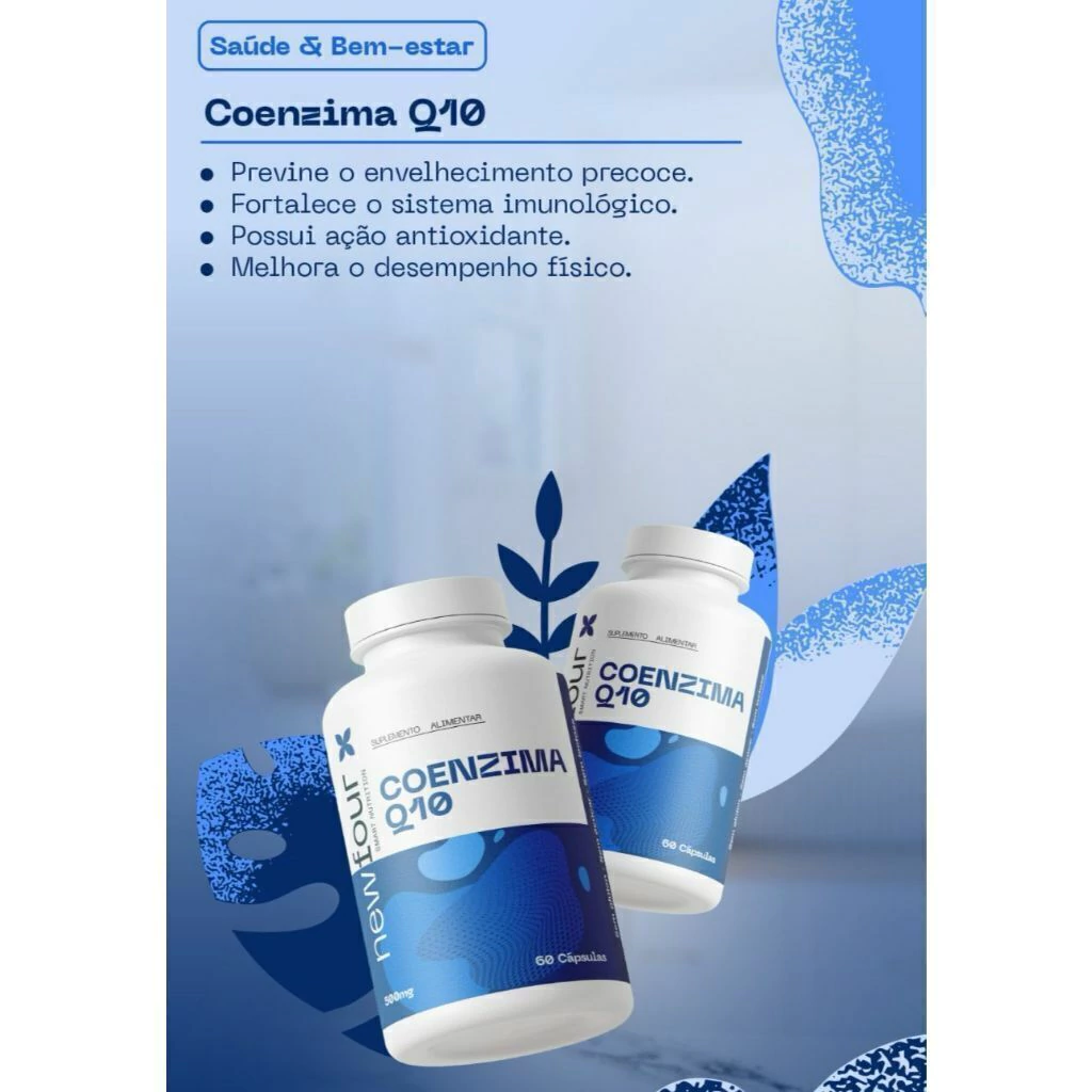 Coenzima Q10 New Four é um suplemento avançado que utiliza alta tecnologia para fornecer um nutriente essencial na prevenção do envelhecimento precoce e no fortalecimento do sistema imunológico. Com suas propriedades antioxidantes, este produto é ideal para quem busca melhorar a saúde geral e proteger as células contra os danos causados pelos radicais livres. Incorporar Coenzima Q10 New Four na sua rotina diária é uma maneira eficaz de promover o bem-estar e manter a vitalidade. Além de seus benefícios para a saúde e imunidade, Coenzima Q10 New Four é especialmente útil para quem pratica exercícios físicos intensos. Suas propriedades antioxidantes ajudam a melhorar o desempenho físico, proporcionando mais energia e resistência durante os treinos. Com Coenzima Q10 New Four, você pode alcançar seus objetivos fitness de maneira mais eficiente, enquanto cuida da sua saúde e prolonga a juventude das suas células. Ingredientes Coenzima Q10. Composição da cápsula: gelatina e umectante glicerina.