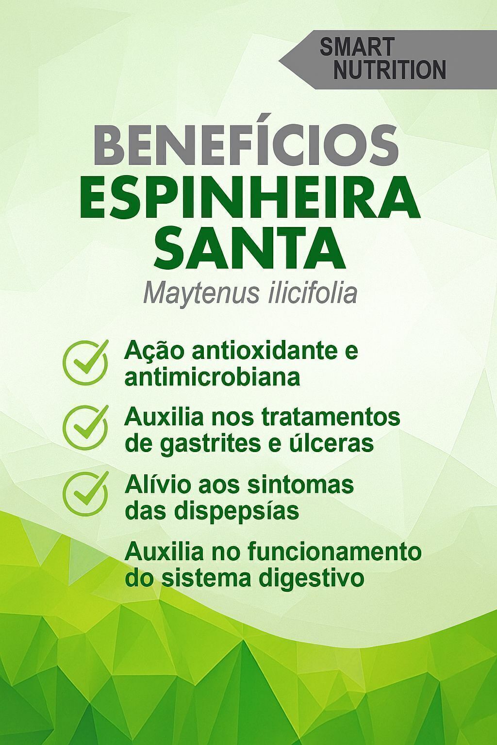 A Espinheira Santa (Maytenus ilicifolia) é uma planta medicinal tradicionalmente utilizada para o cuidado da saúde digestiva. Conhecida por suas propriedades naturais que auxiliam no alívio da gastrite, má digestão, refluxo e azia, ela contribui para a proteção da mucosa gástrica e favorece o bom funcionamento do estômago.
